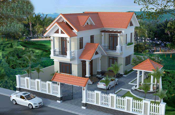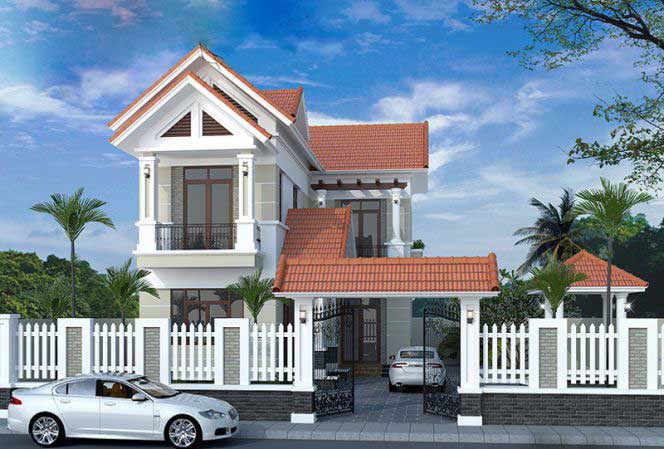 - Kiểu dáng: Nhà 2 tầng mái thái có sân vườn.