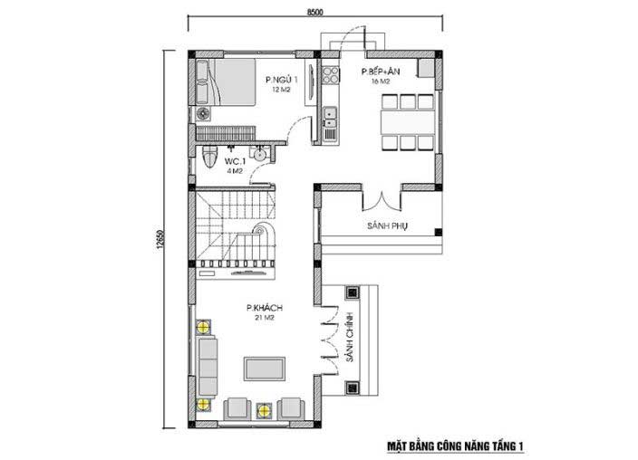- Tổng diện tích đất: 16 x 27 = 432m2.