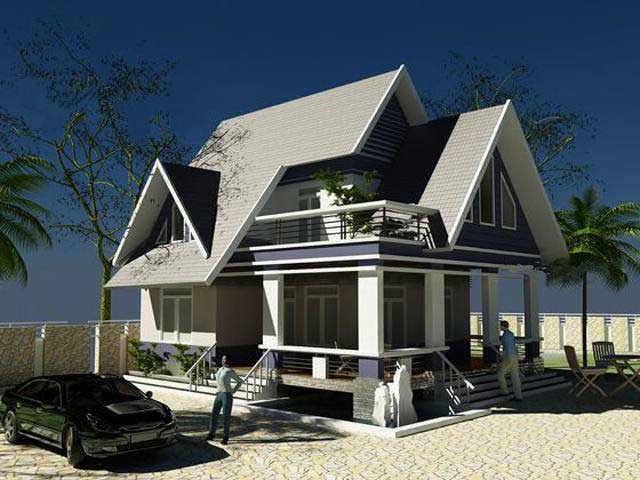 Hình ảnh phối cảnh mẫu biệt thự 2 tầng 80m2 mái thái đẹp