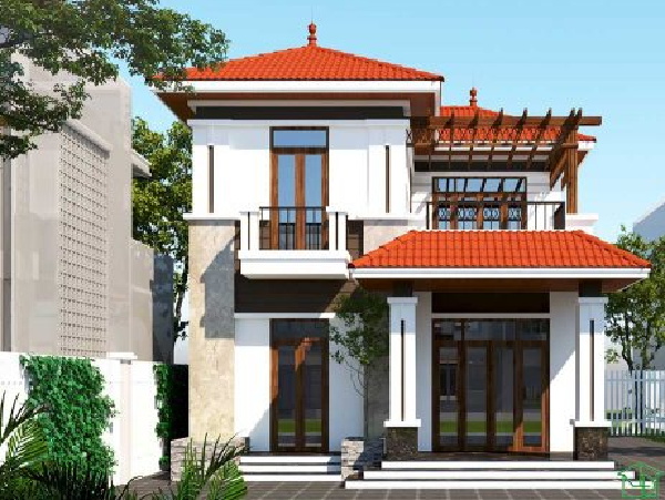 Có phần mặt tiền tương tự với mẫu thiết kế mẫu nhà 2 tầng 8x12m phía trên nhưng mang đến sự hiện đại, tươi mới do lựa chọn màu mái ngói. Nếu như mẫu thiết kế phía trên gia chủ lựa chọn màu xanh thẫm mang đến vẻ đẹp cổ điển pha lẫn hiện đại thì mẫu nhà bên dưới với sắc đỏ cam rực rỡ, mang đến sự trẻ trung, bừng sáng cả không gian.