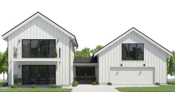 Đây là 1 mẫu thiết kế khá lạ mắt về cả thiết kế và cách bố trí các phòng của căn biệt thự. Căn biệt thư như 2 khối nhà riêng nối liền nhau bởi 1 khối nhà nhỏ ở giữa . Tổng thể bên ngoài căn nhà sử dụng gỗ được sơn trắng và các cửa kính lớn viền kim loai đen . Màu sắc đối lập, hình dáng đặc biệt đầy thu hút .