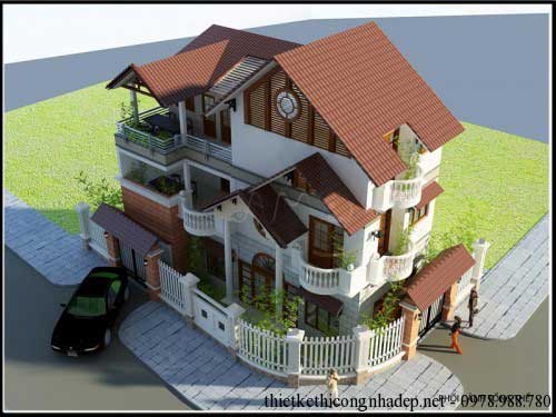 Điểm nổi bật của mẫu biệt thự 3 tầng mái thái 2 mặt tiền đẹp này là mái nhà được thiết kế độc đáo và tinh xảo. Mặc dù dự án nằm ở giữa một ngã tư, nhưng song song đó sở hữu một mảnh đất rất nhỏ. Do đó, kế hoạch xây dựng biệt thự 3 tầng được coi là phù hợp với mô hình có 2 mặt tiền này, hy vọng sẽ là một gợi ý thú vị cho khách hàng quan tâm.