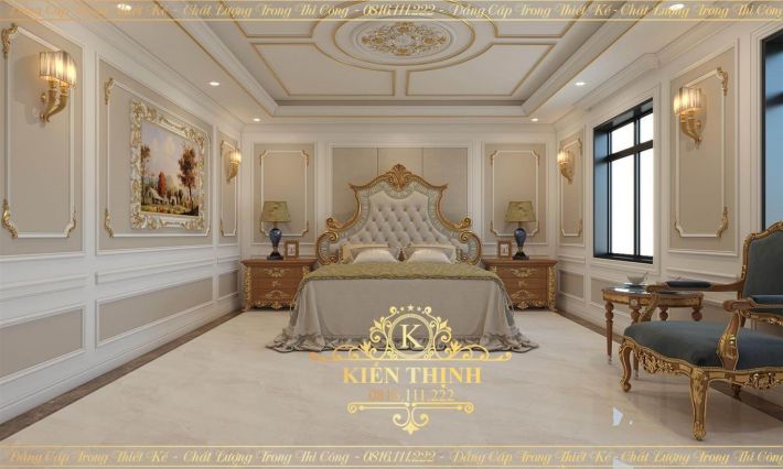 Phòng khách sẽ được bố trí với diện tích rộng nhất, đảm bảo nhu cầu tiếp khách cũng như việc tụ họp gia đình. Không gian phòng khách có sự thống nhất giữa màu của hệ của chính, màu sơn tường và bộ sofa. Với phong cách cổ điển, không gian phòng khách không thể thiếu đi chiếc đèn chùm tỏa ra ánh sáng ấm áp. Ngày nay, nhiều gia đình sẽ lựa chọn đèn quạt trần thay cho đèn chùm truyền thống để trang trí.