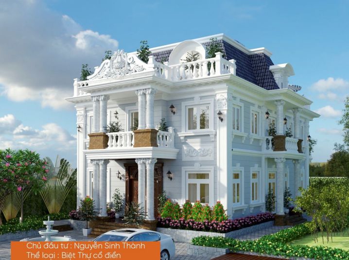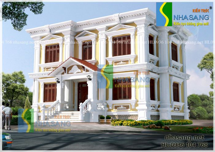 Thiết kế căn biệt thự cổ điển mái bằng này đòi hỏi kiến trúc sư phải là người giàu kinh nghiệm trong thiết kế và xây dựng biệt thự cổ điển. Làm sao để vừa mang đến một công trình kiến trúc đẹp, sang trọng thể hiện được đẳng cấp của gia chủ mà vẫn đảm bảo công năng sử dụng. Mẫu biệt thự cổ điển mái bằng 3 tầng mà xaydungso.vn giới thiệu dưới đây là công trình độc đáo, ấn tượng đến từng chi tiết trang trí.