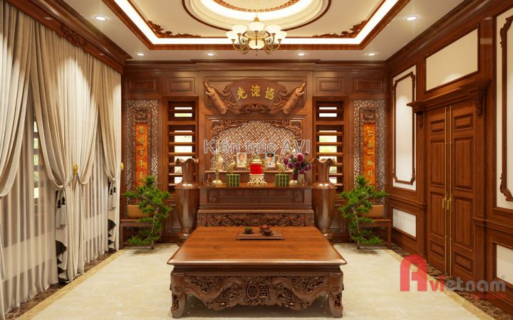 Thờ cúng tổ tiên là biểu hiện của đạo lý “uống nước nhớ nguồn”. Chính vì vậy, với những căn biệt thự cổ điển thì việc thiết kế phòng thờ theo hứng cổ điển hay bàn thờ hợp phong thủy rất được các gia chủ quan tâm. Hầu hết phòng thờ đều được đặt ở vị trí cao nhất, trung tâm nhất trong căn nhà để hấp thụ được những luồng vượng khí. Thiết kế nội thất phòng thờ để tạo cho người ta cảm giác như đang bước vào phòng chưng bày, với cảm giác ấm áp chứ không phải cảm giác lạnh lẽo như người ta thường nghĩ.