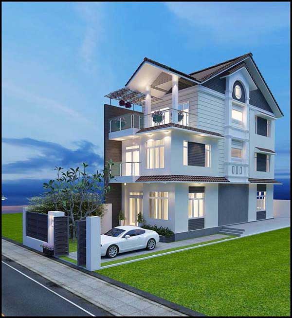 Một mẫu biệt thự mini 3 tầng đẹp sẽ giúp bạn có được những ý tưởng cho không gian sống của mình. Mẫu biệt thự này được lấy cảm hứng từ không gian xanh, kết hợp với lối kiến trúc đơn giản nhưng hiện đại. Không gian hai mặt tiền làm nổi bật lên kiến trúc độc đáo, mỗi mặt được thiết kế với những điểm nhấn riêng tạo nên sự thu hút cho ngôi nhà. Khoảng sân nhỏ phía trước là khu vực lý tưởng để bạn để ô tô.