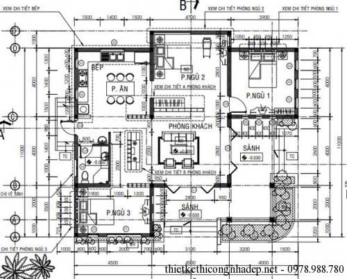 => Mẫu nhà biệt thự 1 tầng 3 phòng ngủ