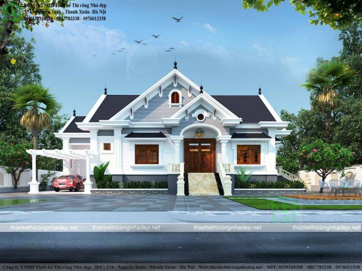 Biệt thự tân cổ điển 1 tầng theo phong cách Châu Âu đang được rất ưa chuộng và đặc biệt là các khu nông thôn phát triển. Khi chiêm ngưỡng căn biệt thự tân cổ điển 1 tầng chúng ta thấy toát nên vẻ đẹp khỏe khoắn, trẻ trung và vô cùng lội cuốn. Mỗi đường nét thiết kế của căn biệt thự 1 tầng đều được hòa quyện với nhau nhằm tạo nên nét đẹp phóng thoáng riêng và đặc sắc cho mẫu thiết kế này. Bên cạnh đó thì mọi công năng sử dụng và chức năng sinh hoạt của biệt thự vẫn như các biệt thự khác.
