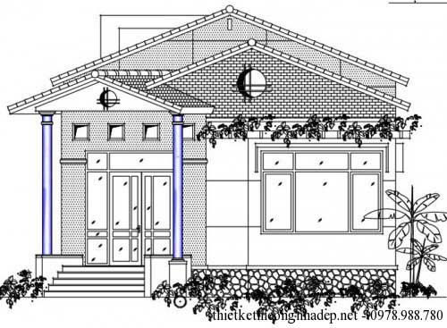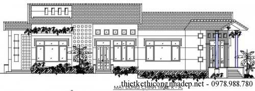 Tham khảo bản vẽ biệt thự nhà vườn 1 tầng mái ngói hiện đại