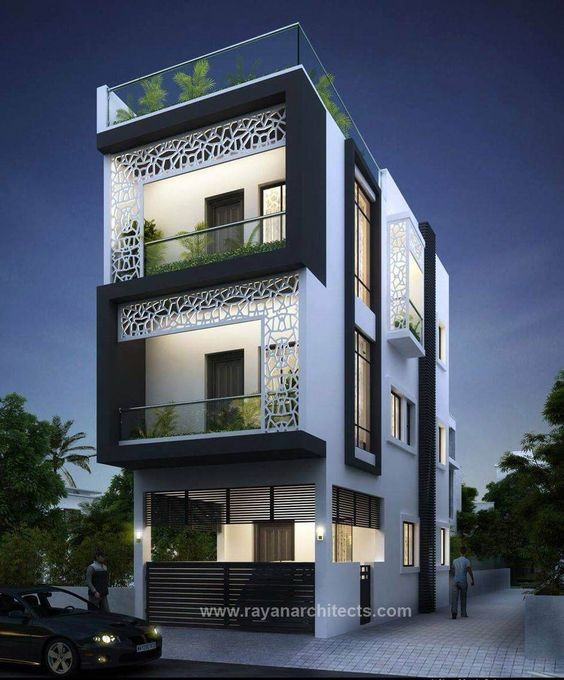 Sáng tạo cùng các đường nét hoa văn cho mặt tiền của ngôi nhà trở nên sinh động hơn. Cách kết hợp hoa văn đan chéo giữa các tầng tạo sự mới mẻ, hiện đại. Tầng 1 là hệ thống khung sắt song song, mang lại không gian mở cho ngôi nhà. Sự kết hợp khéo léo giữa tone màu trắng đen tạo sự sang trọng, hiện đại cho toàn bộ ngôi nhà.