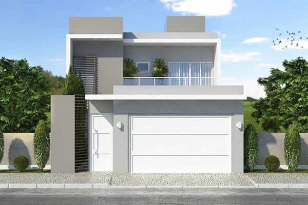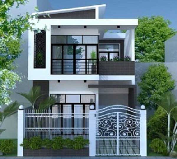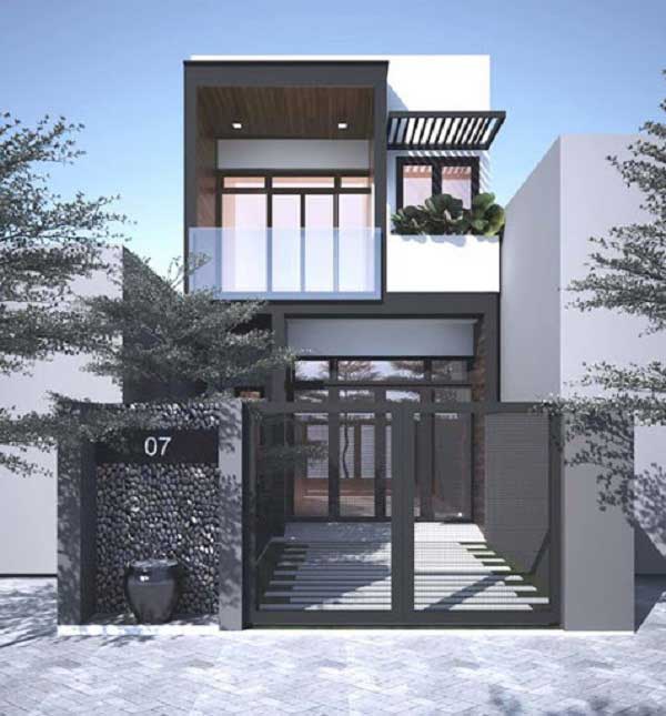 Mẫu nhà này khiến cho không ít người với hệ thống cửa chính mới mẻ, góp phần làm cho ngôi nhà trở nên đặc sắc hơn rất nhiều, sử dụng gam màu xám ghi thay vì sử dụng màu trắng hay be làm chủ đạo tạo một làn gió mới cho ngôi nhà. Thiết kế lan can để các thành viên trong gia đình có thể quan sát những cảnh vật xung quanh hay nhìn từ trên xuống dễ dàng. Hơn nữa việc sử dụng những khối hình học đơn giản nhưng nó đủ làm lay động những gia chủ khó tính nhất.