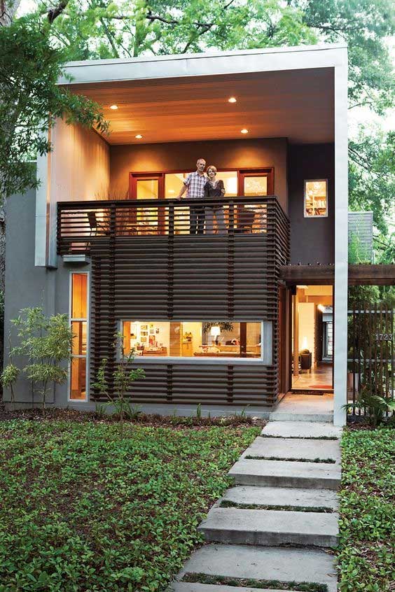 Chúng ta đang được chiêm ngưỡng 1 ngôi nhà với thiết kế hiện đại mang phong cách Châu Âu. Sự đồng bộ hoàn hảo của lan can nhà chạy xuống tầng trệt . Hệ thống cửa kính được lắp đặt khá sang trọng, thông thoáng giữa toàn bộ ngôi nhà. Lối đi vào nhà bậc thang khá mộc mạc nhưng rất nổi bật. Phía trước gia chủ tận dụng trồng các loại cây, hoa, hay rau…