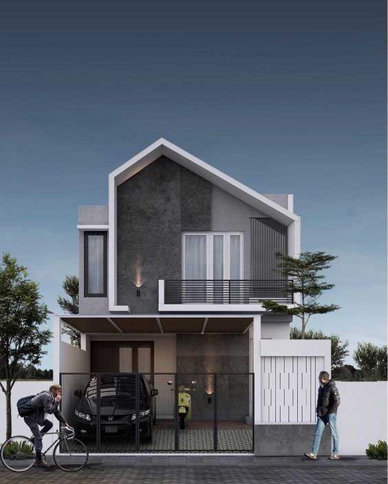 Ngôi nhà là sự kết hợp giữa các màu trung tính, chỉ với đen và trắng nhưng cũng đủ tạo nên 1 không gian hiện đại với cấu tạo mái khá đặc biệt. Phần trước ngôi nhà là khoảng trống để có thể để ô tô, các phương tiện đi lại, còn khu vực chính ngôi nhà được thiết kế lùi về phía sau, đảm bảo các yếu tố thẩm mỹ, công năng, tiện nghi.