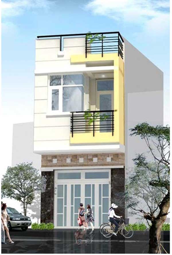 Với những nét nhấn nhá của sự pha trộn màu sơn, mẫu nhà 1 trệt 1 lầu mái bằng này là một mẫu nhà đẹp và nổi bật giữa lòng thành phố. Thiết kế các cửa chính và cừa sổ đều làm bằng kính; cửa chính rộng tạo không gian thoáng. Khoảng sân phía trước và ban công tầng lầu được tô điểm và nhấn nhá bằng một vài chậu cây xanh, tạo cho mặt tiền không bị gò bó mà vô cùng thoải mái.
