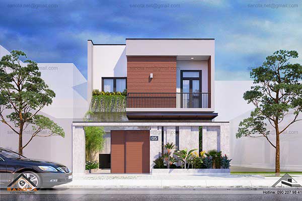 Mẫu nhà 1 trệt 1 lầu mái bằng với thiết kế đơn giản mà ninh mắt. Với thiết kế lam che nắng ở tầng 1, gia đình bạn đã khoảng sân mát mẻ và chỗ để ô tô thoải mái.
