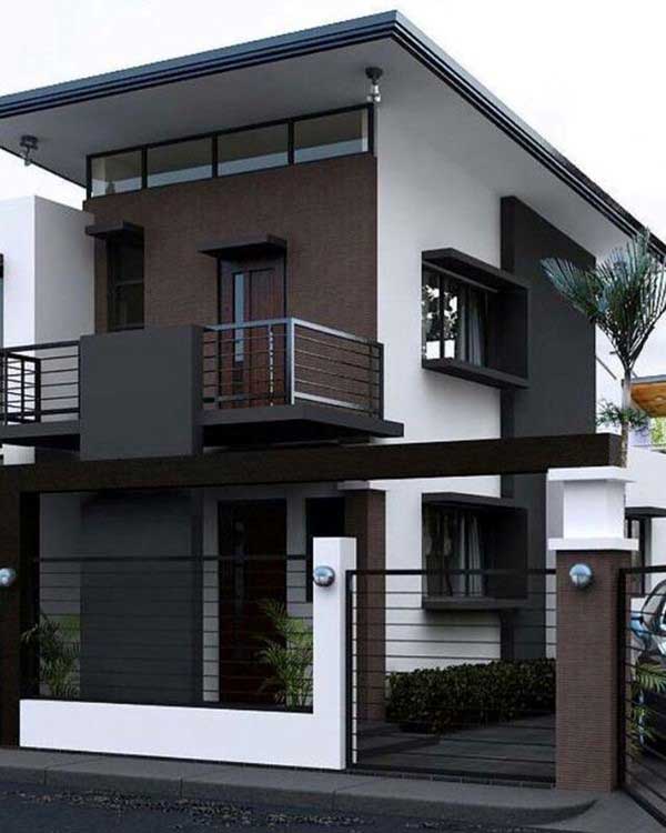 Cũng giống như mẫu nhà 1 trệt 1 lầu mái bằng ở trên, mẫu nhà này sử dụng gam màu trầm làm chủ đạo, kêt hợp với ngoại thất bằng gỗ, làm tăng vẻ sang trọng cho tổng thể không gian.