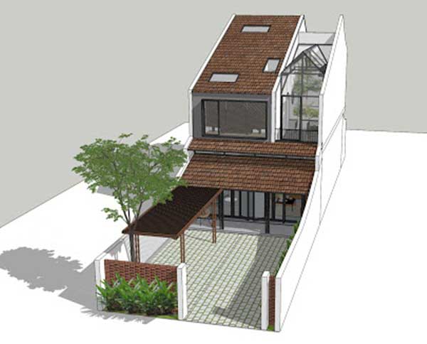 Diện tích hẹp cũng không thể nào ngăn lại vẻ đẹp và công năng tiện ích của ngôi nhà này. Đây là phương án tuyệt vời cho những ai sinh sống ở thành phố mà có diện tích nhà với chiều ngang khiêm tốn. Phần mái dốc từ trên xuống giúp nước mưa không bị ứ đọng lại rất tiện lợi. Ngoài ra, với thiết kế ngoại thất hiện đại và cách bố trí sang trọng, ngôi nhà càng trở nên năng động và hợp thời hơn.