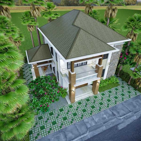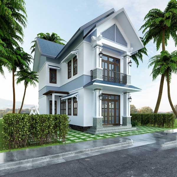 Với thiết kế hình khối kết hợp với mái chữ A sang trọng, hiện đại. Căn nhà có không gian rộng rãi với khoảng ban công thoáng mát rất thuận tiện cho gia chủ trồng cây cảnh, hoa… gam màu nhẹ nhàng chạm những đường bo sẫm màu làm cho căn nhà trở nên nổi bật, trẻ trung và mang nét thẫm mỹ cao.