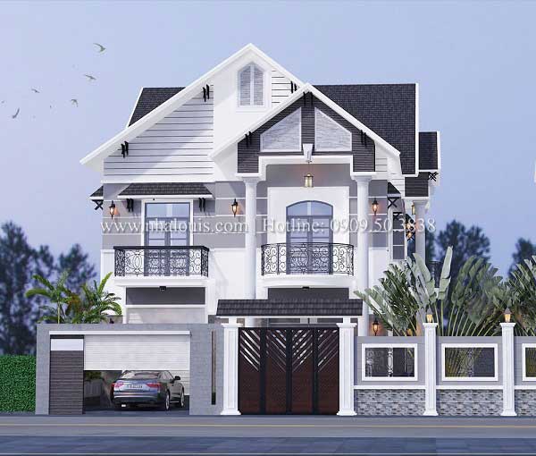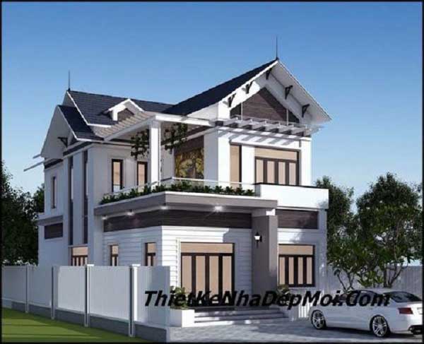 Mẫu nhà này được không ít các gia đình ở nông thôn tìm kiếm bởi sự sang trọng mà nó mang lại. Với thiết kế mái thái tạo được sự khác lạ cùng như nó thích hợp hợp với khí hậu của người Việt Nam, mang phong cách thiết kế hiện đại thể hiện được phong cách riêng của họ. Ngoài ra hệ thống cửa số cho đến cửa chính đều sử dụng kính cường lực giúp đón ánh sáng tự nhiên cũng như đón gió một cách hiệu quả. Hơn nữa với hệ thống cửa kính thì gia chủ còn quan sát được những cảnh vật bên ngoài. Sử dụng màu sáng làm tone chủ đạo kết hợp với lan can màu đen tạo điểm nhấn nhá cho ngôi nhà.