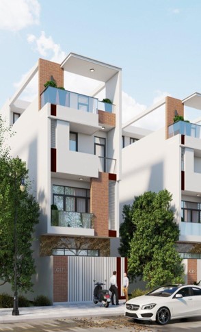 A. Phối cảnh mặt tiền ngôi nhà diện tích 50m 1 trệt 3 lầu :