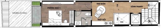 B. Thiết kế nội thất ngôi nhà 1 trệt 3 lầu từ diện tích 5x20m :
