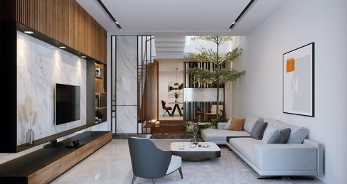 Vì nhà phố hiện nay thường có nhược điểm từ chiều ngang sẽ gây nên cảm giác ngột ngạt và bí bách cho không gian bên trong nên việc ưu tiên hơn hết chính là lược bớt đi các bức tường và thay vào đó là một kết cấu ứng dụng lối xây dựng từ phong cách mở. Sử dụng các vách ngăn, che tạo độ thông thoáng cho công trình để chúng trở nên hoàn thiện hơn.
