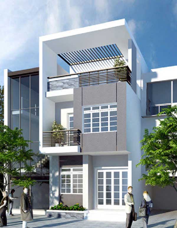 Lấy màu xám ghi làm màu chủ đạo trong trang trí mặt tiền ngôi nhà hết hợp với hệ thống của nhôm khung màu trắng làm nổi bật cũng như mang đến những ấn tượng cho người sử dụng. Hơn nữa việc thiết kế một lan can được thiết kế đơn giản những không kém phần tinh tế giúp cho gia chủ đứng hóng mát một cách dễ dàng.