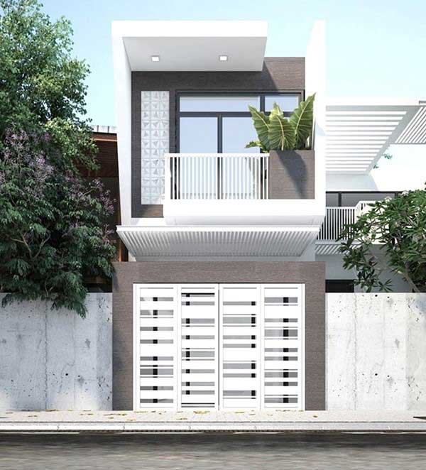 Mẫu nhà 2 tầng 5m mang phong cách năng động hiện đại khỏe khoắn nhưng không quá cầu kì trong khâu trang trí ngoại thất. Căn nhà chủ yếu sử dụng mảng khối bê tông để thiết kế kiến trúc nên nhìn rất năng động, hệ thống kính cường lực được lắp đặt ở các cửa chính, thành ban công rất sang trọng và hiện đại. Gam màu trắng, nâu ha lẫn màu xám đậm tạo lên nét tương phản, khiến căn nhà trở nên tươi sáng hơn và đẹp mắt hơn rất nhiều. Chỉ vỏn vẹn có 5m nhưng căn nhà 2 tầng đã phát huy được những công năng tiện ích, khiến cuộc sống gia chủ trở nên thoải mái trong quá trình sinh hoạt cũng như làm việc.