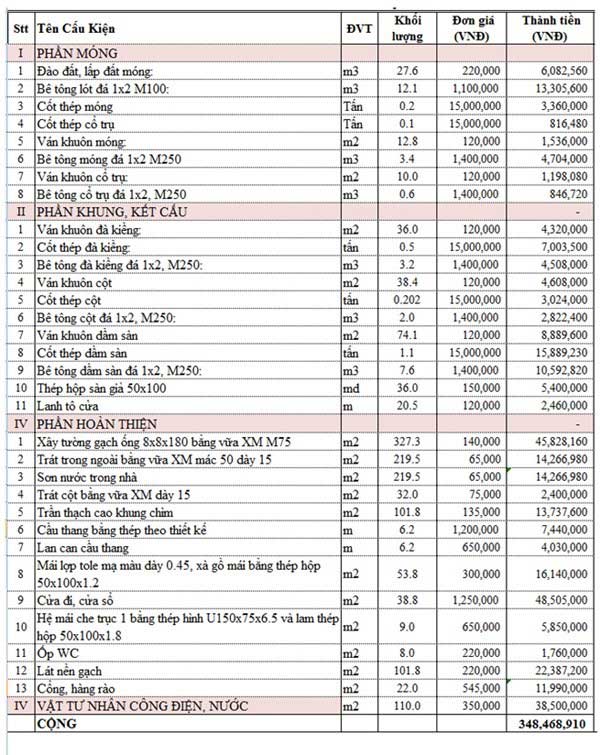 Dưới đây là nguồn tư liệu về bản chi phí thi công nhà ở cơ bản về phần xây thô và đã hoàn thiện. Bạn có thể tham khảo: