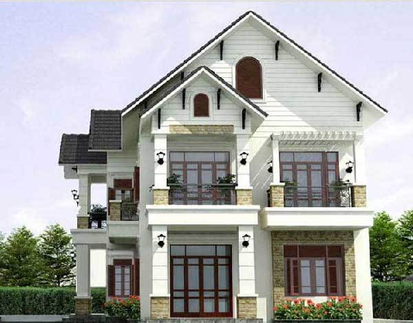 Lớp sơn trắng kết hợp ốp đá vân gạch như thiết kế đang sử dụng mang đến sự chắc chắn cho tổng thể kiến trúc cũng là điểm nhấn cho ngôi nhà. Kết hợp thêm cây xanh được bố trí xung quanh mang đến màu sắc tươi xanh của thiên nhiên. Kiến trúc mái với lớp chỉ phảo nhẹ nhàng cùng với ngói xám đã đủ để làm nên ngôi biệt thự mini tân cổ điển 2 tầng 8mx11m.