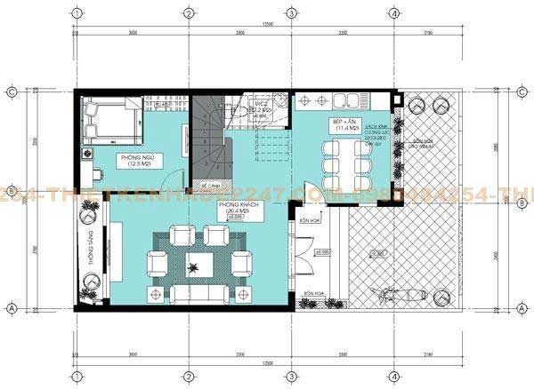 Vì sở hữu mặt tiền 8m nên kiến trúc sư chia đôi diện tích thành hai phần diện tích bằng nhau, mỗi bên có 4m chiều ngang. Với diện tích 4m thứ nhất, kiến trúc sư bố trí một sân trước nhà để vừa là sân chơi cho trẻ con trong gia đình vừa là nơi để oto, xe máy cho gia chủ. Sau sân là sảnh chính với kiến trúc bậc tam cấp để phần diện tích sinh hoạt bên trong xây dựng cao hơn phần sân và cũng là ngăn cách hai khu vực này với nhau. Sau sảnh chính gia chủ bố trí diện tích phòng khách khá lớn toàn diện tích còn lại để gia chủ có thể tiếp đón vị khách đến chơi nhà với không gian rộng thoáng. Cuối không gian phòng khách kiến trúc sư bố trí thông tầng vừa giúp thông thoáng cho toàn bộ ngôi nhà, vừa đem đến không gian xanh tạo cảnh quan tốt cho phong khách của gia chủ.