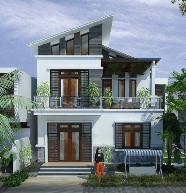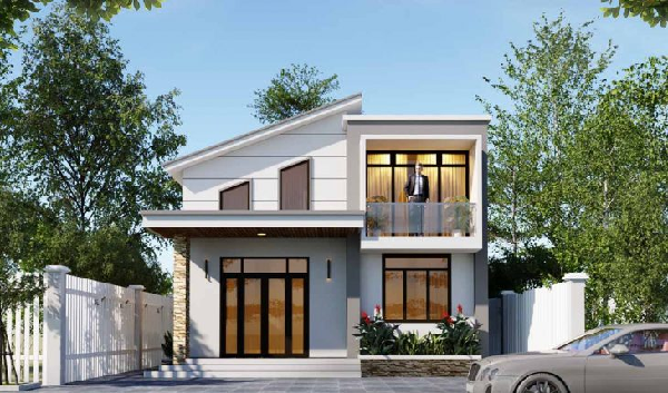Mẫu nhà 2 tầng 8x13 sẽ rất thiếu trong top thiết kế đẹp, xu hướng hiện này nếu như không nhắc đến những mẫu nhà méo xéo. Với thiết kế đặc biệt mẫu nhà này đón được gió, ánh sáng thuận lợi hơn so với các loại mái khác, thuận tiện với điều kiện thời tiết của nước ta hiện nay. Với mẫu thiết kế đang được nhắc đến ở đây thì ngôi nhà 2 tầng này mang vẻ sang trọng hiện đại sử dụng khung cửa gỗ. Phần ban công tầng hai được gia chủ đặt bộ bàn ghế thư giãn hợp lý.