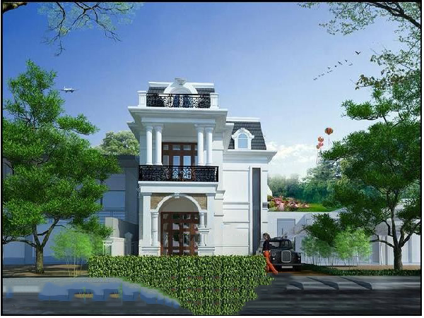 Không nằm ngoài top thiết kế đẹp cho mẫu nhà 2 tầng 8x13 là mẫu thiết kế theo phong cách tân cổ điển, lựa chọn kiến trúc Pháp cực kỳ sang trọng, cổ điển cho gia chủ sở hữu. Tone trắng trang nhã, lịch sự cho toàn bộ mặt tiền. Điểm nổi bật là cột trụ tròn được sử dụng linh họa từ để chồng lên nhau đến cột kép ở tầng hai, ban công sắt với hoa tiết cong cổ điển. Phần mái hình thang với kiến trúc giả mái mang đến kiến trúc điển hình nước Pháp đặt tại Việt Nam.
