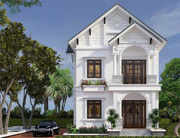 Gam màu trắng tinh tế kết hợp với màu sắc trầm, ấm nhưng vô cùng sang trọng của gỗ tạo thành điểm nhấn cho ngôi nhà. Một vài chi tiết tân cổ điển cũng được sử dụng tạo nên một vẻ đẹp phong phú cho mẫu nhà 2 tầng 90m2 này. Mặc dù vậy, các chi tiết lại được sử dụng vừa phải, không quá nhiều, nên bạn có thể cảm thấy sự tinh tế, không nặng nề hay rối mắt. Nó là mẫu nhà phù hợp với những gia đình có 3 thế hệ.
