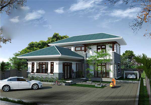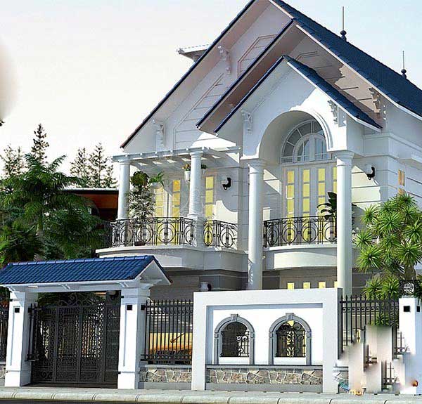 Nếu bạn yêu thích sự nhẹ nhàng, đơn giản kết hợp giữa phong cách phương Đông và phương Tây thì đây chính là mẫu nhà hai tầng 9x12m mà bạn không thể bỏ qua. Kiến trúc mang dáng vẻ của không gian tân cổ điển nhưng lại kết hợp với một số họa tiết Á – Đông mang đến một không gian tuyệt vời. Sân trước rộng rãi nên bạn có thể tận dụng nó cho các hoạt động thường ngày.