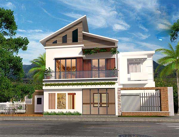 Giống như hai ngôi nhà gắn liền vào nhau, mẫu nhà hai tầng 9x12m này thực sự khiến nhiều người thích thú bởi sự độc đáo trong kiến trúc của mình. Những đường nét đơn giản, nhưng vô cùng mạnh mẽ và dứt khoát kết hợp với vật liệu xây dựng hiện đại khiến cho ngôi nhà toát lên vẻ đẹp của sự hiện đại và sang trọng vô cùng. Mẫu thiết kế này vẫn đảm bảo được sự thông thoáng, rộng rãi với cửa sổ lớn cùng với không gian sân trước thoáng đãng.