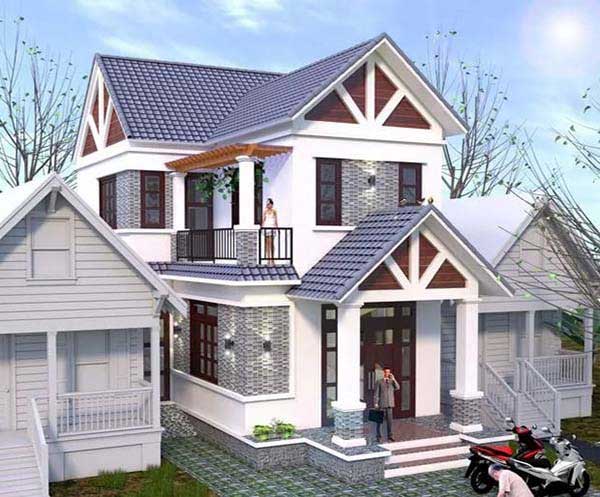 Nằm trong khuôn viên xanh mát, mẫu nhà hai tầng 9x8m này nổi bật và trở nên thu hút hơn. Kiểu nhà ống với mái thái đơn giản tạo sự gần gũi cho thiết kế. Hai mặt của ngôi nhà được thiết kế với nhiều chi tiết trang trí như bồn cây, gạch ốp kết hợp với sơn tường tạo cho ngôi nhà vẻ đẹp hoàn hảo.