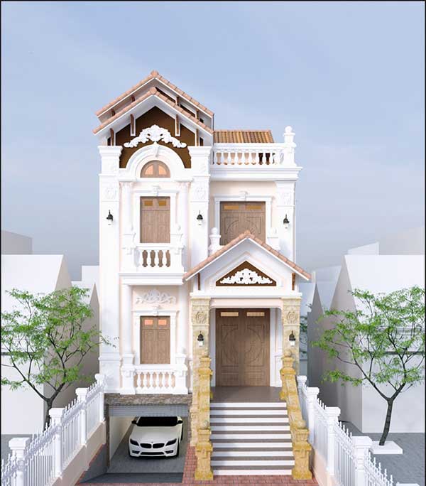 Kiểu nhà ống với kiến trúc tầng lầu cao như mẫu nhà 2 tầng 1 hầm này cũng vô cùng phổ biến hiện nay. Kiến trúc ngôi nhà được thiết kế đơn giản, nhưng những chi tiết được sử dụng lại vô cùng chi tiết, tỉ mỉ theo phong cách cổ điển. Trước nhà thiết kế khoảng sân rộng rãi cùng với tầng hầm ô tô tiện lợi giúp bạn có thể dễ dàng lấy và để xe vào vị trí ban đầu. Với thiết kế bậc thang càng khiến cho ngôi nhà trở nên cao và bề thế hơn.