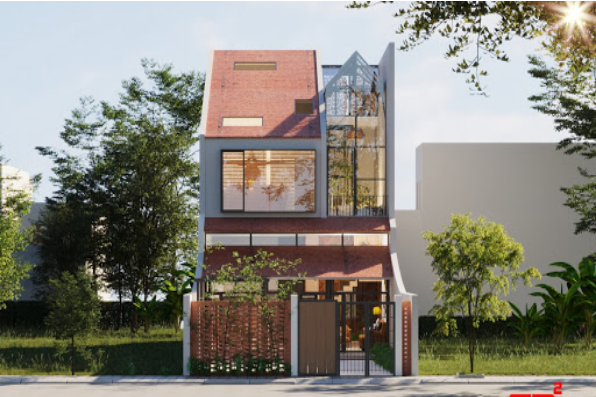 Đây là một mẫu thiết kế đan xen nhiều chi tiết của kiểu nhà ba gian trong thiết kế nhà ở nông thôn xưa khi tone màu chủ đạo là tráng-đỏ gạch tạo cảm giác vương vấn nét đẹp trong văn hóa gia đình Việt từ bao đời. Giống như cuộc sống hiện đại có bao nhiêu thì đó vẫn là kỉ niệm, là thói quen đã ẩn sâu trong tiềm thức khi chúng ta nghĩ đến những nét đặc trưng nhất làm nên một ngôi nhà.