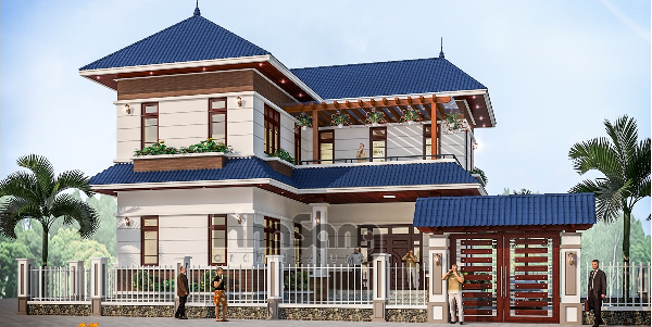 Cuối cùng là kiến trúc tầng mái với sự kết hợp của lam che nắng và nét kiến trúc đường chỉ phào nhẹ cùng hệ thống mái Thái có độ dốc lớn mang lại kiến trúc tổng thể vô cùng ấn tượng.