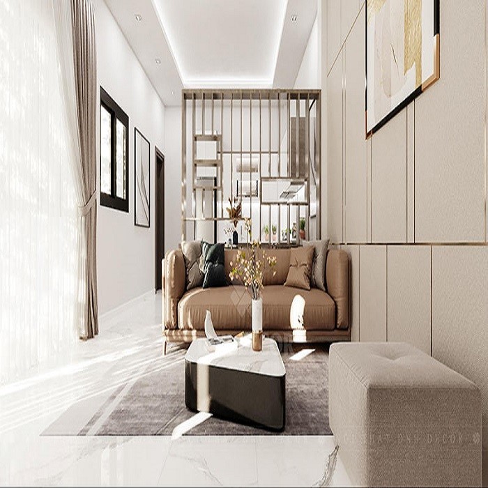 Đến với mẫu thiết kế mặt bằng tổng thể nội thất nhà phố 3 tầng diện tích 40 m2 chúng ta bắt gặp ngay mẫu sofa đêm êm kết hợp tông màu xám sang trọng kết hợp gối tựa màu xanh đẹp cùng với bàn trà được thiết kế và thi công trên chất liệu gỗ tự nhiên đó chính là gỗ sồi. Nguyên liệu gỗ để làm ra bộ bàn ghế có nguồn gốc 100% từ thiên nhiên và độ bền cao. Màu đen huyền thoại của bàn trà được coi là tông màu bền nhất với năm tháng, đây cũng chính là màu sắc chủ đạo cho phòng khách này. Gia chủ đã sử dụng màu sơn tường sáng để làm nổi bật nên vẻ đẹp cho bộ bàn ghế cũng như tôn nên giá trị của nó trong căn phòng.