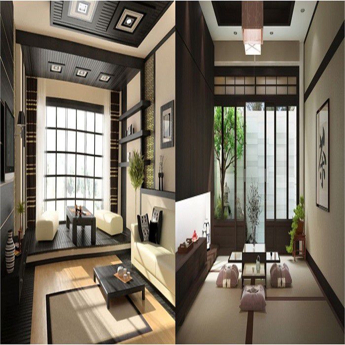Phòng khách của người Nhật được thiết kế rộng rãi và thoáng mát, thay vì thiết kế bộ bàn ghế chồng chềnh thì phòng khách người nhật thiết kế bàn trà nhỏ thấp trên sàn gỗ mang đến tính thẩm mỹ cao cho không gian phòng khách. Nội thất phòng hầu hết được thiết kế và làm từ chất liệu gỗ tự nhiên, mang đến hơi ấm cho căn phòng.