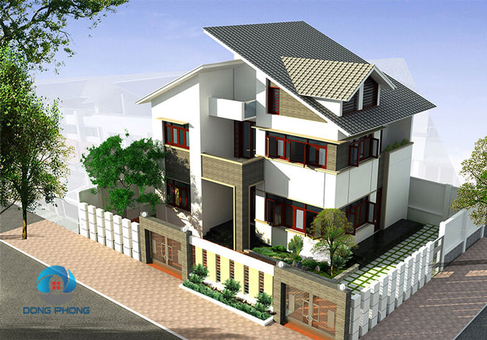 Đến với những hình ảnh đẹp về phối cảnh của ngôi nhà, chúng ta thấy ngay phần mái chính là nét nổi bật nhất trong thiết kế của căn nhà này. Điểm nhấn của mái chính là độ chênh lệch của mái tạo nên vẻ đẹp hiện đại cho ngôi nhà, không bị cứng nhắc hay trùng lặp. Về cấu tạo của 2 mái đều được đổ bê tông và sau đó dán ngói để đảm bảo sự vững chãi và thực hiện thiên sứ chống lại nắng mưa bão tố của thiên nhiên.