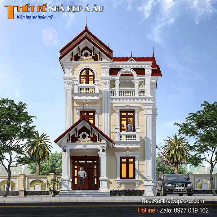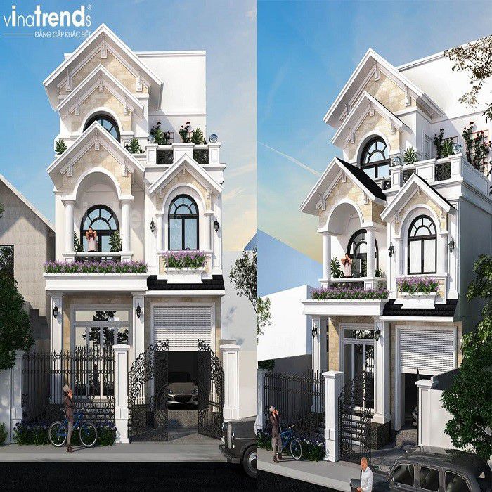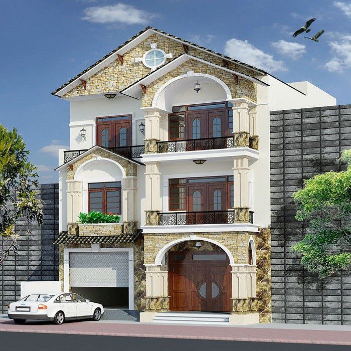 Đây cũng được coi là một ngôi nhà 3 tầng với kiến trúc rất độc đáo đúng không nào. Không quá khó để chúng ta bắt gặp mẫu nhà này trong thực tế bởi đã trở nên quá quen thuộc ở nhiều nơi trên đất nước ta. Với điểm nhấn là đồ sộ và sang chảnh chắc chắn sẽ khiến bạn hài long.