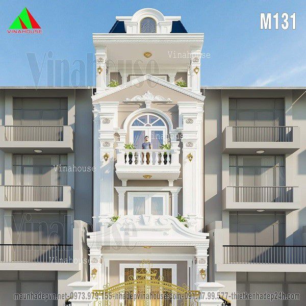 Mẫu nhà 3 tầng tân cổ điển đẹp nhờ sự hài hòa của các khối hình.