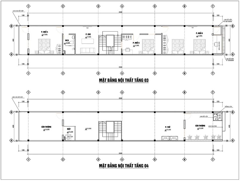 Còn từ tầng 2 trở lên đến tầng 4 sẽ là không gian sinh hoạt của gia đình bạn. Tại các không gian này cũng được thiết kế đơn giản nhưng vẫn có những điểm nhấn cho không gian như các hoạ tiết hoa văn sang trọng, các cột tròn được thiết kế chìm.