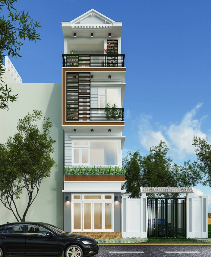 Phối cảnh tổng quan mẫu nhà 4 tầng mặt tiền 4m đẹp