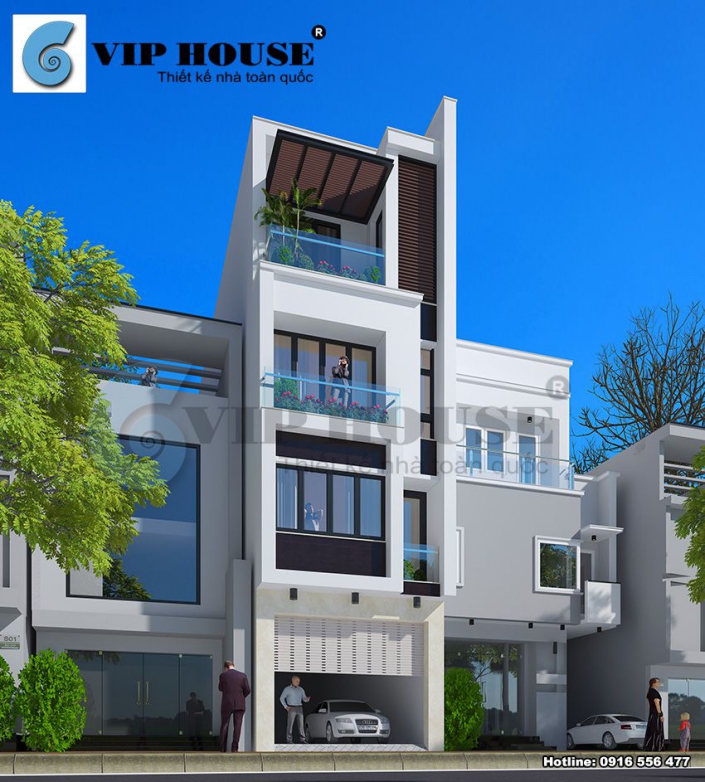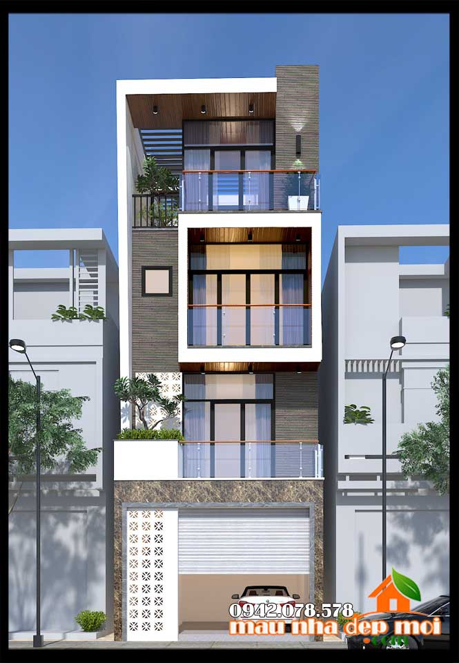 Đầu tiên, chúng ta sẽ cùng phối cảnh nhà 4 tầng mặt tiền 5m theo phong cách hiện đại. Kiến trúc hiện đại có nguồn gốc từ Châu Âu du nhập vào nước ta. Những căn nhà mang đặc trưng của phong cách kiến trúc hiện đại với các hệ thống trụ cột khoẻ khoắn, rõ ràng khác hẳn với mẫu nhà đẹp truyền thống ngày xưa là hình vòm, hình tròn. Điều này làm cho căn nhà nổi bật lên vẻ đẹp bề thế, vững chãi giữa khu đất.