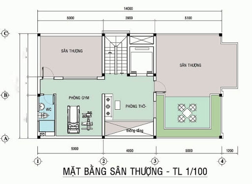 Tầng 4: là phòng thờ cúng gia tiên được thiết kế trang nghiêm và lịch sử. Bên cạnh là nơi giặt và phơi quần áo. Vì còn một khoảng diện tích khá lớn chủ nhà có thể thiết kế thành phòng dự trữ đồ hoặc phòng tập thể dục.