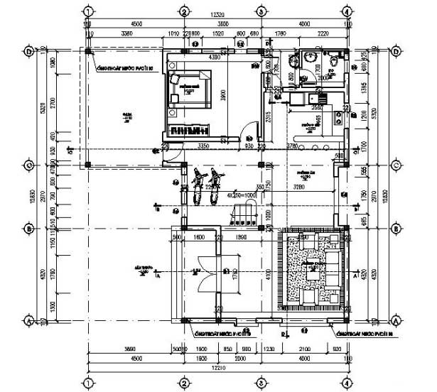 Đúng như anh Bách mong muốn có một khoảng không gian rộng trước cửa nhà, chúng tôi đã khéo léo thiết kế thêm những chậu cây cảnh và cây hoa vô cùng đẹp mắt. Bên dưới tầng 1 làm nơi để xe ô tô cho anh Bách. Từ chỗ để ô tô có lối đi thông vào khu vực để xe máy cho các thành viên khác trong gia đình, rất thuận tiện, an toàn và sạch sẽ.